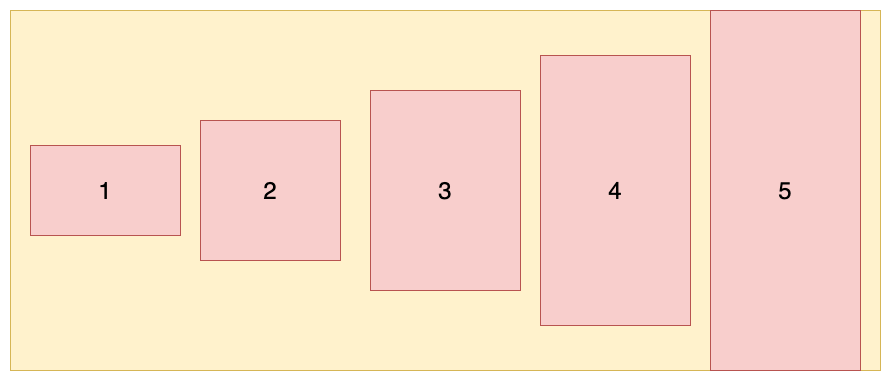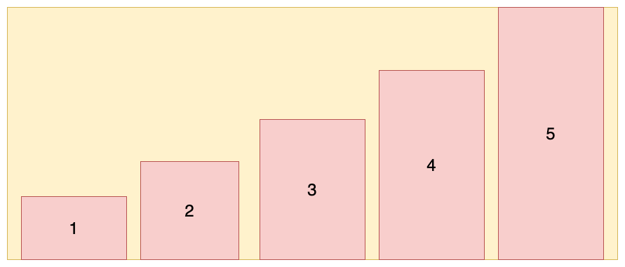 (3)align-items: center:交叉轴的中点对齐。设置容器高度为 100px,项目高度分别为 20px、40px、60px、80px、100px,效果如图所示: