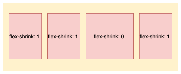 - 如果一个项目的flex-shrink 属性为 0,其他项目都为 1,则空间不足时,前者不缩小,如下图所示: