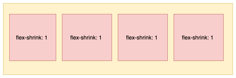 - 如果所有项目的flex-shrink 属性都为 1,当空间不足时,都将等比例缩小,如下图所示: