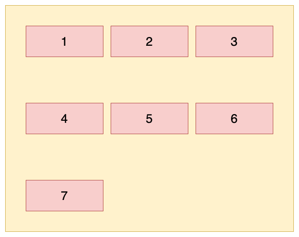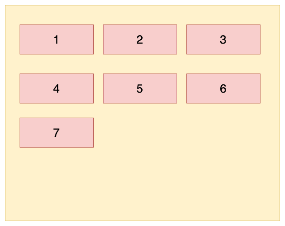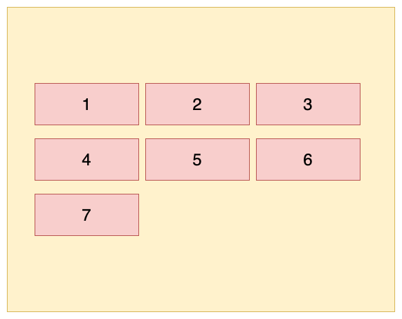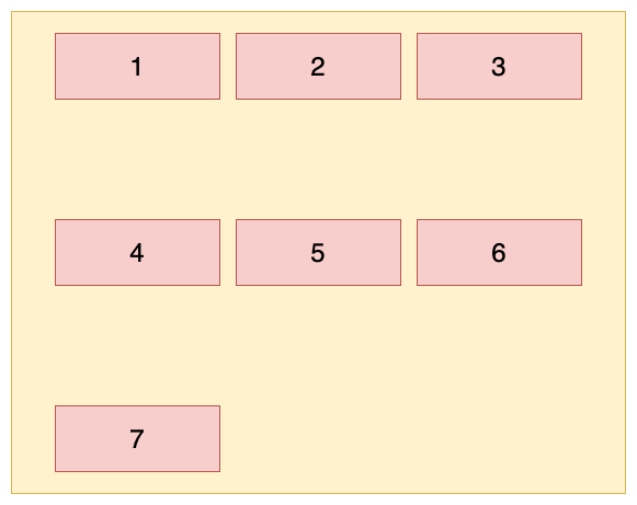 这里以水平方向为主轴时举例,即:flex-direction: row; flex-wrap: wrap;
