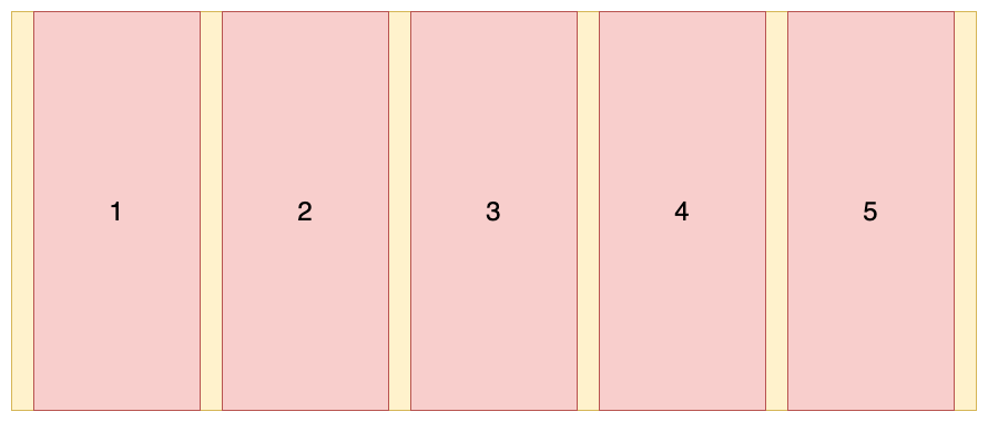 (4)justify-content : space-between:元素在主轴上两端对齐,元素之间间隔相等